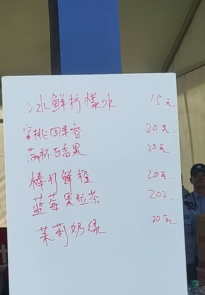 视频显示,平时售价约4元的柠檬水,音乐节现场售价15元;平时约6元的棒打鲜橙、满杯百香果,现场售价20元。该网友惊叹:“长治音乐节的蜜雪,怕是全世界最贵的了。”
